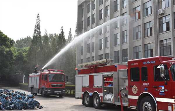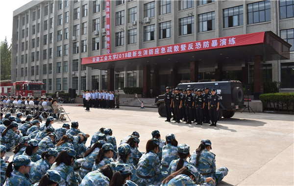 为进一步加强我校消防应急疏散和反恐防暴工作,增强广大师生的安全防范意识,提升学校有效应对处置突发事件的能力。9月18日上午,在马鞍山市公安特警支队、消防支队官兵的支持配合下,学校在佳山校区举行“2018级新生消防应急疏散暨反恐防暴演练”。校党委书记刘新跃、副校长祖明出席演练活动,校党委宣传部、学生工作部(处)、安全保卫部(处)、后勤处负责人,各学院分管学生工作副书记、相关部门工作人员、部分辅导员和5000余名2018级新生参加了演练。