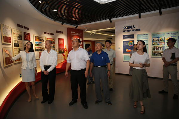 参观结束后,一行人促膝座谈。卢荣景对学校在党建引领、立德树人、科学研究等各方面所取得的显著成绩给予了充分肯定。他表示,校史展览思路清晰,类别丰富,很受教育,希望学校充分发挥好校史的资政、育人作用。