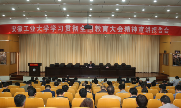 魏先文在主持会议时指出,报告会既是一次学习贯彻全国教育大会精神宣讲会,也是一次领导干部及教师培训会。全校上下要以本次报告会为契机,以时不我待、只争朝夕的精神状态和攻坚克难、拼搏奋进的行动姿态,进一步将我校学习贯彻全国教育大会精神工作引向深入。一是领导干部要深入学、带头干。把全国教育大会精神转化为谋划发展的思路、推动发展的举措、领导发展的能力,做知行合一的模范。二是全校上下要学而思、信而行。要紧密联系各自工作实际,坚持问题导向、目标导向、效果导向,坚持学以致用、用以促学,切实把全国教育大会精神落实到各自的实际工作中去。三是广大教师要传大道、念真经。要肩负起传播知识、传播思想、传播真理,塑造灵魂、塑造生命、塑造新人的时代重任,真正做学生锤炼品格、学习知识、创新思维、奉献祖国的引路人,教育引导青年学子争做德智体美劳全面发展的社会主义建设者和接班人。