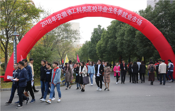 11月10日,安徽省工科类高校毕业生就业市场暨我校2018年冬季就业市场在秀山校区4个场馆举办,来自全国17个省市的475家用人单位,提供了1.3万个就业岗位。会前,校党委书记刘新跃多次听取工作汇报,要求精心组织好就业市场,促进毕业生充分和高质量就业。校长魏先文,副校长祖明、林钟高、顾明言和安徽省大中专毕业生就业指导中心副主任袁江林一同到就业市场检查指导工作,与参会单位代表和毕业生进行交流,了解社会和行业的岗位需求以及毕业生求职情况。各院领导班子、专业教师和毕业班辅导员在各招聘会场中,对接用人单位,收集企业需求,指导毕业生就业。