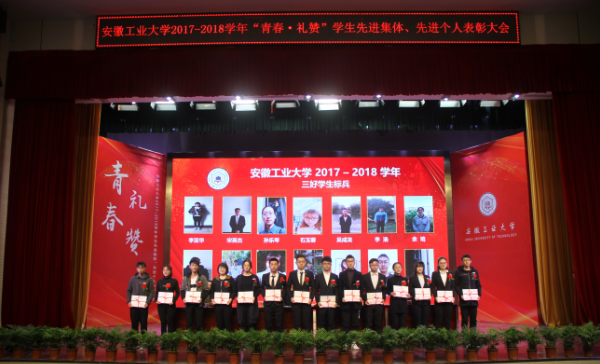 表彰大会由校学工部(处)主办,电气学院承办。2017-2018学年,我校广大学生在课程学习、实践活动及科技竞赛中成绩斐然,涌现出350多个先进集体和5000多名先进个人,7000多人次获得了各类奖学金,6000余人次在省部级以上学科竞赛中获奖。学校贯彻实施“教育部41号令”情况、学生资助和新疆生教育管理服务等工作,均受到省调研组的好评;1名辅导员荣获全国高校辅导员素质能力大赛一等奖,创造了安徽省历史最好成绩。(撰稿:盛樟 陈宪德 审核:姚敏  邹珏)