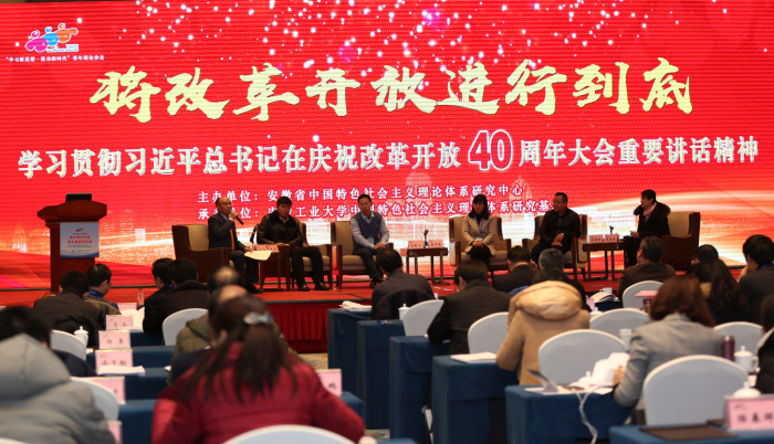 本次沙龙活动由安徽省中国特色社会主义理论体系研究中心主办、安徽工业大学中国特色社会主义理论体系研究基地承办。沙龙以“将改革开放进行到底——学习贯彻习近平总书记在庆祝改革开放40周年大会重要讲话精神”为主题,采取主旨演讲、交流讨论、专家点评等形式进行。来自全省各高校和社科研究机构的青年专家、青年学生及中国特色社会主义理论体系研究基地负责同志110多人参加了研讨。
