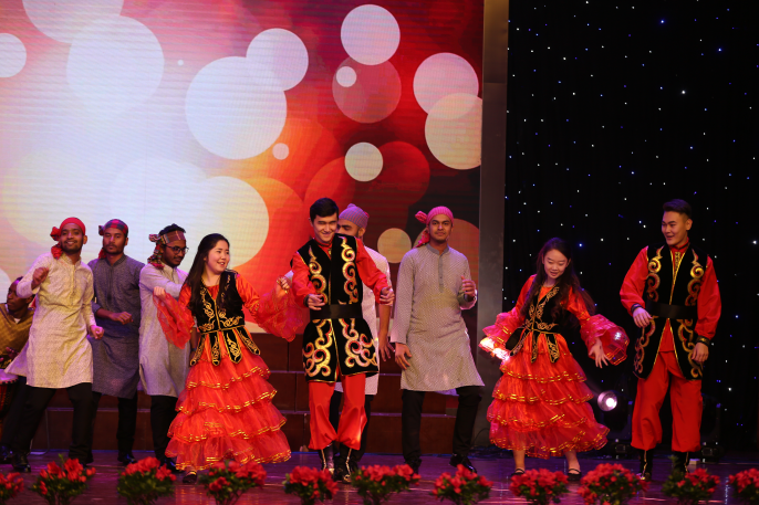 新年音乐会在欢快热烈的民乐合奏《花好月圆》和二胡独奏《喜看麦田千层浪》中拉开帷幕。大学生艺术团的舞蹈《梅砺香》舞姿婀娜、柔和轻快、果敢坚毅。艺韵组合带来的俄罗斯民谣曲风小合唱《贝加尔湖畔》让观众感受了贝加尔湖的清澈深邃、飘逸空灵。音乐会还邀请到了校大学生艺术教育中心外聘艺术指导教师,来自俄罗斯卡累利阿国立大剧院的演员、格拉祖诺夫音乐学院声乐教师安娜•莎拉耶娃为音乐会助兴。她的女声独唱《军营里飞来一只百灵鸟》《喀秋莎》悠扬嘹亮,将音乐会带入高潮。闫妮老师的京剧风格钢琴曲《皮黄》大胆借鉴了京剧的音乐素材,让钢琴融入别样的戏曲声中。四手联弹《军队进行曲》节奏铿锵、旋律优美、清新自然、引人入胜。