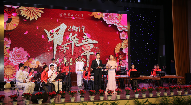 为庆祝改革开放40周年暨安徽工业大学建校60周年,迎接校第四届党代会召开,1月3日晚,我校在秀山校区新大学生活动中心举办2019“甲子华章”新年音乐会。校党委书记刘新跃、校长魏先文、副校长顾明言以及2018年度获得各级各类表彰的优秀教师、优秀学生、学校各部门、各学院负责人与师生代表一同观看了演出。音乐会由艺术与设计学院承办,校党委宣传部、学校办公室、团委协办。