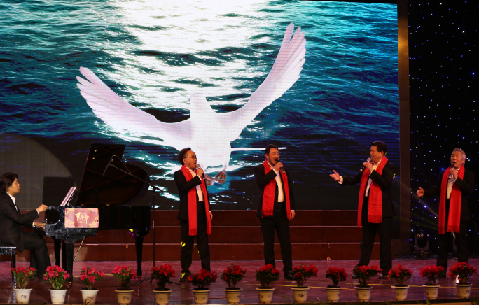 马鞍山市文联主席、校大学生艺术教育中心艺术顾问吴大巢老师和马鞍市著名歌唱家赵西鳌、刘松、张朝晖的“3+1”组合用歌曲《举杯吧朋友》《党啊亲爱的妈妈》,表达了对中国共产党的感恩和对祖国的美好祝福。国际教育学院留学生的外国歌曲联唱为工大的校园文化增添了一道亮丽的风景线。西洋乐器合奏带来的是华丽而高贵动人的探戈名曲《一步之遥》。吴文兵老师的男声独唱《两地曲》和校艺术教育中心外聘艺术指导、赵玉艳老师的女声独唱《美丽中国》讴歌了家国天下的高尚情怀,展示了美丽中国的时代画卷。混声合唱《listen to the wind》《彩虹 》《光荣与梦想》释放了青春的活力、放飞了年轻的梦想。整场音乐会在气势磅礴、凝心聚力的《再一次出发》中落下帷幕。