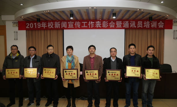 会上,祖明宣读了《关于表彰2018年全校新闻宣传工作优秀单位和先进个人的通报》。刘新跃、祖明为学校2018年新闻宣传工作优秀单位、先进个人颁发了奖牌和证书。