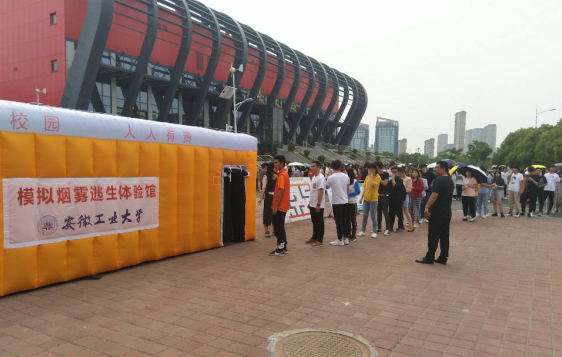 演练结束后,观摩嘉宾进入了“模拟烟雾逃生体验馆”实地体验。