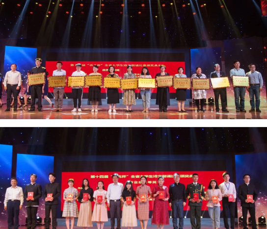 5月18日晚,第十四届全省大学生诗文朗诵比赛暨全国中华经典诵读大赛大学生组省级决赛在安徽师范大学落幕。我校外国语学院秘书学专业吴豪和外语系黄颖两名同学朗读的《中华颂》在全省339件作品中脱颖而出,成功入围决赛,最终在非专业组29支队伍中夺得第六名,荣获二等奖,学校获评“优秀组织奖”。