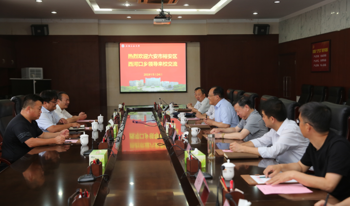 5月24日下午,六安市裕安区西河口乡乡长汪明家一行4人来校交流扶贫工作。校党委书记刘新跃、副书记祖明出席座谈会,校办、工会、冶金学院、材料学院、资产处、驻村工作队等部门单位负责人参加了座谈交流。在校期间,校长魏先文接见了汪明家一行。