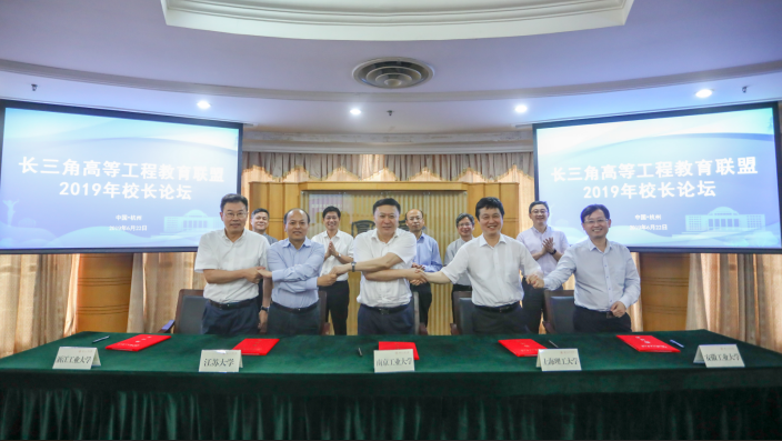 为积极响应中共中央《长江三角洲区域一体化发展规划纲要》部署,主动服务长三角一体化国家战略,长三角高等工程教育联盟于6月22日在浙江工业大学召开2019年校长论坛,共商高等工程教育发展大计。我校校长魏先文率党政办、发展规划处、教务处、科研处、工程研究院等部门负责人出席了论坛活动。上海市教育委员会、浙江省教育厅、江苏省教育厅有关领导,南京工业大学、浙江工业大学、上海理工大学、江苏大学、安徽工业大学等五所联盟高校参加论坛。