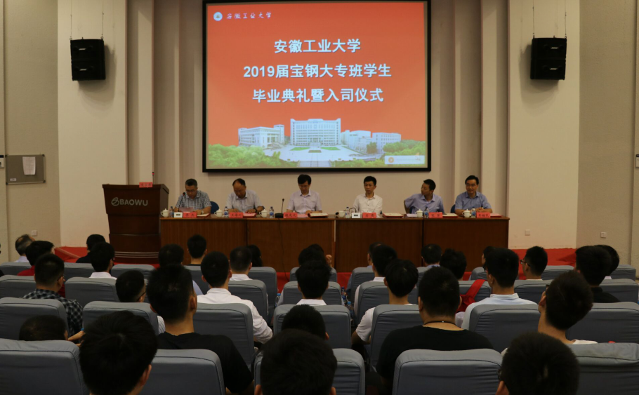 7月16日上午,安徽工业大学2019届宝钢大专班学生毕业典礼暨入司仪式在宝武人才开发院学术报告厅举行。校长魏先文,宝山钢铁股份有限公司人力资源部(党委组织部)副部长石亮,校教务处、冶金工程学院等相关负责人,部分教师代表及2019届全体毕业生参加仪式。