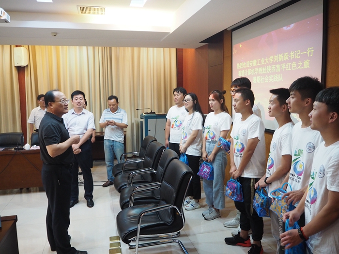 巍巍宝塔山,滚滚延河水。7月25日,刘新跃一行赴陕西省延安市走访慰问我校艺术与设计学院与建筑工程学院2019年“追寻红色足迹·情系圣地发展”两支国家级暑期社会实践队。刘新跃听取了指导老师和同学们的汇报,亲切关心询问实践队员们的工作生活情况。希望同学们在实践中做到“三要”,一是圣地寻访要有收获,要养成每天记录感悟的习惯,在思想上、专业上都有新的收获;二是思想政治教育要受洗礼,要根据国家专项计划的要求,沿着红色革命的足迹,充分感悟延安的红色文化和精神,真正实现思想政治教育的入脑入心;三是产品设计开发要有成果。要在社会实践成果的完善过程中,结合亲身体会的革命历史,融入红色革命元素,创作饱含深情、富有新意的作品。实践队员们表示,通过实践进一步学深悟透习近平新时代中国特色社会主义思想,作为新时代青年大学生,要学习知识,锻炼能力,增长才干,不忘初心,牢记使命,为实现中华民族伟大复兴的中国梦贡献青春力量。(撰稿:滕少聪 王颖之 赵颖 张胥卿 审核:王先柱 邹珏)