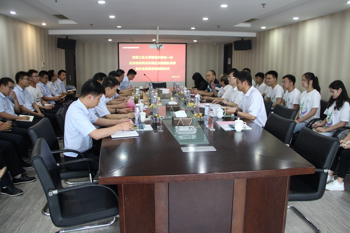 在合肥同兴环保科技股份有限公司,魏先文看望慰问在此开展暑期社会实践的能源与环境学院、化学与化工学院师生。魏先文和公司董事长郑光明共同为大学生社会实践基地揭牌,并召开校友座谈会。郑光明介绍了公司概况、发展历程和未来的发展方向,表示公司技术部近70%员工是安工大校友,是公司发展的中坚力量,感谢学校向公司输送了大量高质量人才。希望通过建立大学生实践基地,进一步加强校企合作和人才培养的平台建设。魏先文对公司的逐步发展壮大,成为焦化、钢铁行业节能减排和产业升级的生力军表示祝贺,对前期双方校企合作成果给予肯定。希望实践队员们珍惜实践机会,了解企业发展历程,感受社会发展进步,通过躬行实践,知行合一,学思结合,不断提高自身专业理论素养,学习优秀企业文化和优秀校友的榜样精神。魏先文表示,校友是学校的名片和宝贵财富,是母校建设与发展的力量源泉,希望校友们在未来的发展中,充分展示安工大人的责任和担当。实践队员们表示一定不辜负学校、公司领导和老师的期望,珍惜实践机会,提升综合素质,为暑期社会实践活动画上圆满的句号。校友们分享介绍了自身的成长和发展经历,感恩母校的培养教育,表示今后将一如既往努力工作,展现出安工大人良好的精神风貌。(撰稿:吴巍 夏玉钦 徐惠 张胥卿 审核:王先柱 邹珏)