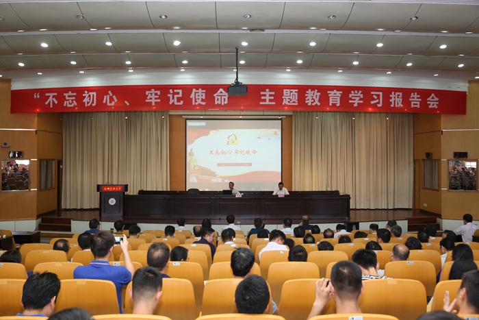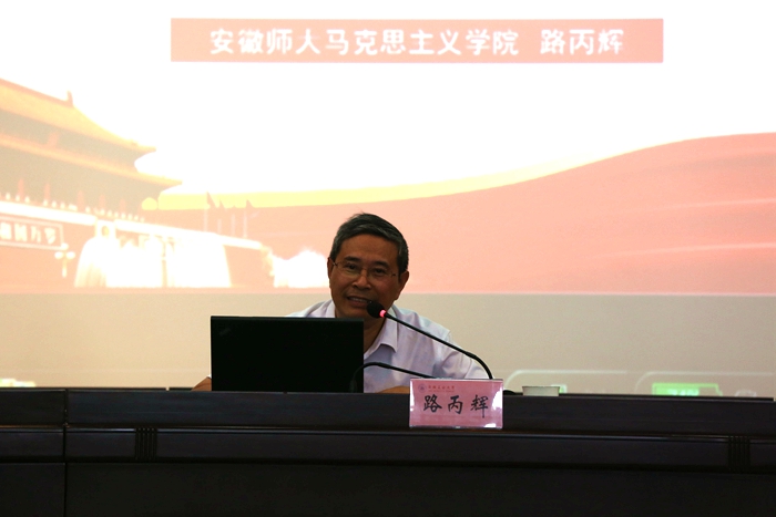9月23日下午,我校在佳山校区学术会议中心举办“不忘初心、牢记使命”主题教育学习报告会。全国“最美思政课教师”,全国模范教师,全国师德标兵,全国高校思想政治理论课教师2013年度影响力人物,中国敬业奉献好人,安徽省道德模范,安徽师范大学马克思主义学院教授,博士生导师路丙辉应邀作题为“不忘初心 牢记使命”的报告。在校校领导刘新跃、魏先文、祖明、顾明言、刘明、水恒福,校党委委员、纪委委员,全校中层干部;马克思主义学院全体教师,全体辅导员;教授党员、教工党员和学生党员听取了报告。报告会由校党委副书记祖明主持。