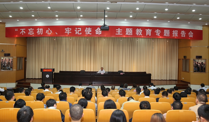 10月10日下午,校党委书记刘新跃以“以信仰坚守初心 用担当诠释使命”为题,在学术会议中心四楼报告厅为我校师生作主题教育专题报告。校党政领导,校党委委员、纪委委员,全校中层干部,校“不忘初心、牢记使命”主题教育督导组组长,基层党支部书记,教授党员代表,马克思主义学院全体教师,全体辅导员,马鞍山学院相关负责人共400余人到场聆听。报告会由校党委副书记、校长魏先文主持。