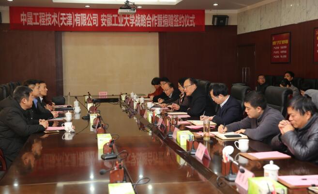 中晟工程技术(天津)有限公司副总经理翟栋、市场总监胡立夫、经理赵茹泉,我校党办校办、研究生院、学生工作部(处)、校友处(基金会秘书处)、国际合作与交流处、科研处、人事处、财务处、冶金学院、建工学院、能环学院、继续教育学院负责人参加了签约仪式。(文/宁永球 图/王旭东 审核:甘亚 窦贤琨 黄勇)