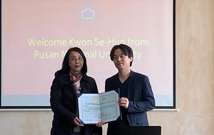 顾明言介绍了我校的办学历史、办学特色以及在学科建设、人才培养、校企合作、国际合作与交流及留学生教育等方面的基本情况,希望与韩国国立釜山大学在前期双方实质性合作与交流的基础上,进一步拓展两校间的学生交流、教师交流和科研合作。顾明言代表学校向KwonSe-Hun教授颁发了客座教授聘用证书。KwonSe-Hun教授表示期待与我校进一步开展实质性的合作与交流,在两校材料科学与工程学院合作的基础上,努力推动国立釜山大学与我校开展校际合作与交流,探索申报两校中外合作培养项目。