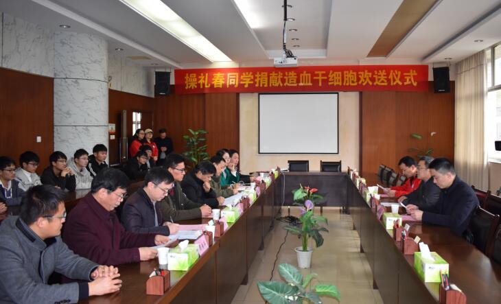 市红十字会副会长方必来介绍了马鞍山市造血干细胞捐献工作开展情况。校学生工作部负责同志介绍了我校学生思想政治教育工作情况,并对操礼春同学无私奉献的善举予以点赞。