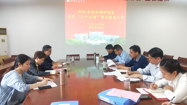 5月8日上午,校纪委书记、校深化“三个以案”警示教育领导小组副组长潘淑琴一行分别到电气与信息工程学院、建筑工程学院,对深化“三个以案”警示教育和学生返校准备工作进行调研指导。