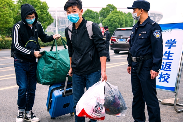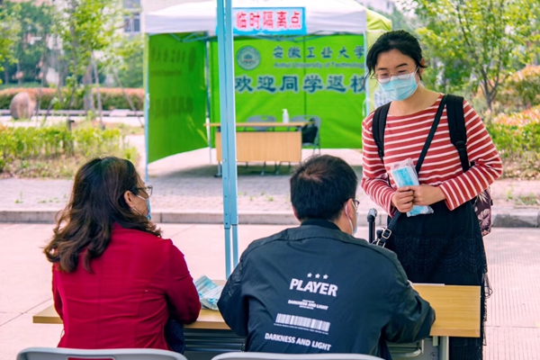 经安徽省教育厅、马鞍山市政府批复同意,5月9日-11日,我校迎来了第一批学生返校。按照预案,返校同学间隔1米有序排队,通过健康码识别、行李消毒、体温测量、返校报到、领取口罩等进校流程,3200余名研究生和毕业年级本科生重返校园。