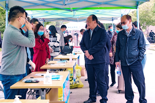 此前,省委教育工委副书记庆承松来我校调研指导2020年春季学期学生返校工作,对我校的疫情防控和学生返校各项准备工作给予了充分肯定。学生返校期间,校党政领导班子全体成员来到佳山、秀山校区两个报到点检查指导学生返校工作,对同学们表示欢迎和慰问。马鞍山市政府副市长阚青鹤一行现场检查了返校和防疫工作,对学校各项工作给予充分肯定。