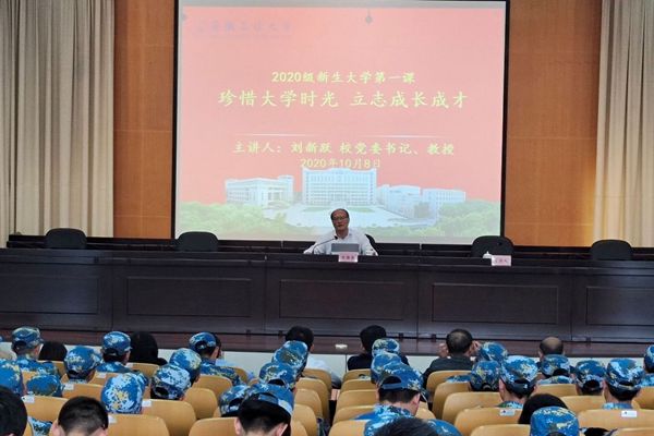 10月8日下午,校党委书记刘新跃教授以《珍惜大学时光立志成长成才》为题,为2020级新生带来了一堂精彩的“大学第一课”。学生工作部相关负责同志、各学院分管学生工作负责人、新生辅导员以及各学院新生代表参加报告会。
