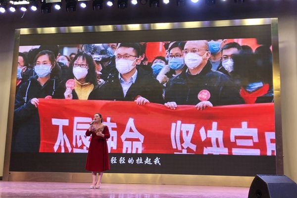 一曲由马鞍山本地音乐家创作的歌曲《等着你回来》,深情再现了全国人民万众一心听党话、众志成城战疫情的感人画面。马鞍山市驰援武汉医疗队队长王朝阳应邀出席晚会,深情讲述那段难忘的战疫经历,将现场气氛推向了高潮。