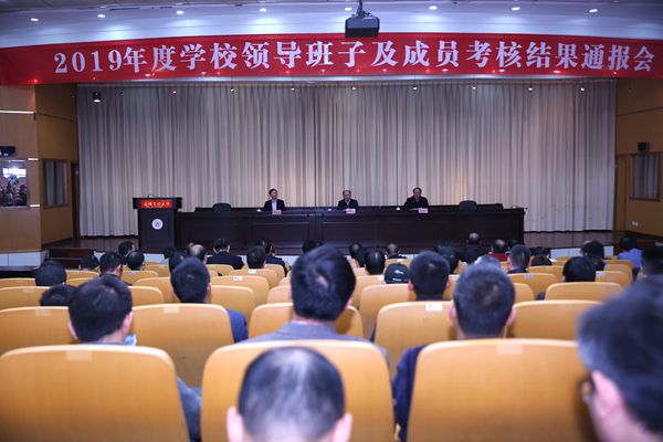 10月20日下午,我校召开干部教师大会,省委第十三综合考核组向我校反馈了2019年度校领导班子及成员综合考核情况,宣布我校领导班子综合考核为“优秀”等次。这是我校继2015年省委开展综合考核以来,连续第五次取得“优秀”等次,也是在优秀等次首次不超过30%的比例范围内取得的殊荣。省委第十三综合考核组组长、省委教育工委书记钱桂仑,考核组部分成员,我校党政领导、督导员、党委常委出席会议。会议由校党委书记刘新跃主持。