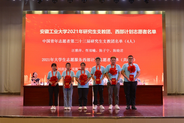 7月2日下午,我校“永远跟党走奋进新时代”2021年大学生暑期社会实践活动启动仪式暨研究生支教团、西部计划志愿者出征仪式在秀山校区新大学生活动中心举行。校党委副书记祖明出席启动仪式,宣传部、学工部、研工部、教务处、团委、工创中心等部门负责人以及各学院党委副书记、团委书记,指导教师代表、社会实践队员代表以及研究生支教团成员和西部计划志愿者参加启动仪式。