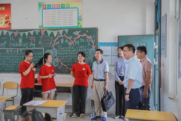 在和县城南中心小学,水恒福一行慰问了“全心全益·成长不孤单”暑期社会实践师生,并为大学生社会实践基地揭牌。水恒福对和县县委县政府提供社会实践平台表示感谢,要求实践队员牢记习近平总书记“七一”重要讲话对青年的殷切寄语,践行“请党放心,强国有我”的承诺,在服务基层的实践中磨练自己,充分展现安工大学子的精神风貌,圆满完成各项实践任务。