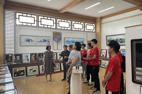 期间,顾明言一行先后参观了丝画馆的展厅、创作室、车间,聆听了中国工艺美术大师袁洪滨讲述一幅幅丝画背后的故事,并观看丝绵画的制作过程。(撰稿:陈恳 审核:郭宏 张苒 杜飞)