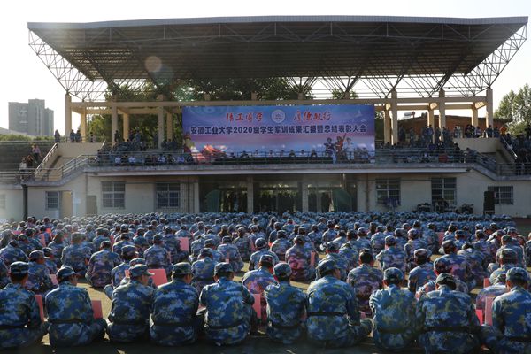 10月9日下午,我校2020级学生军训成果汇报暨总结表彰大会在佳山校区田径场举行。校党委书记刘新跃、校长魏先文、校党委副书记祖明,武警马鞍山支队参谋长齐清雷出席大会。党办校办、宣传部、学工部、武装部、团委、教务处等部门负责人,各学院学生工作负责人、团委书记、新生辅导员以及6000余名新生参加了大会。大会由祖明主持。