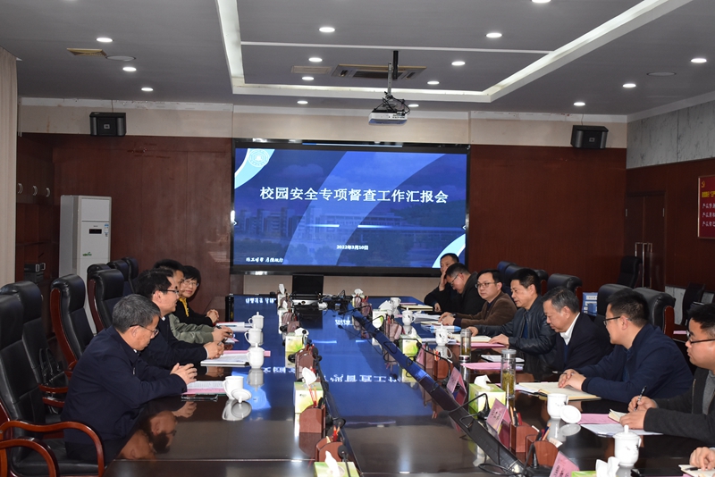 3月10日下午,省校园安全专项整顿工作督查组一行来校督导校园安全工作。校党委副书记祖明陪同督导,党办校办、宣传部、学工部、安保部、国教院、资产处、信息化处、后勤处等部门负责人以及马鞍山市教育局相关负责人参加了活动。
