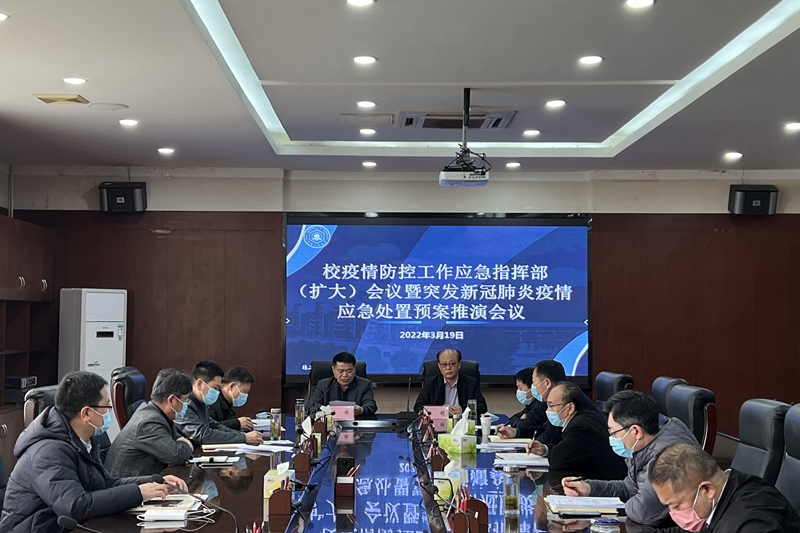 3月19日下午,我校召开疫情防控工作应急指挥部(扩大)会议暨突发新冠肺炎疫情应急处置预案推演会议。会议采用现场和网络视频相结合的方式举行,校党委书记陆林,校党委常委、副校长、校疫情防控应急指挥部指挥长刘明,校疫情防控应急工作专班负责人在主会场参会,各部门负责人、院级党组织书记、分管学生工作副书记线上参会。会议由刘明主持。
