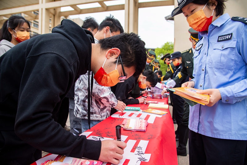 今年4·15全民国家安全教育日的活动主题是,树牢总体国家安全观,感悟新时代国家安全成就,为迎接党的二十大胜利召开营造良好氛围。学校充分利用线上线下渠道宣传普及国家安全知识,引导师生正确理解、认真践行总体国家安全观。安全保卫部印制国家安全知识和防诈知识单页,组织志愿者深入宿舍开展宣传,在教学楼、图书馆、警务站等场所摆放知识展架进行宣讲。党委宣传部、团委通过校园网、微信公众号、校园广播等推出国家安全教育日相关内容,学生工作部和各学院认真组织学生观看教育部《千万师生同上一堂国家安全教育课》直播。(撰稿:包恒庆 谢学华 审核:吴文兵 张苒 黄勇)