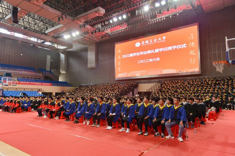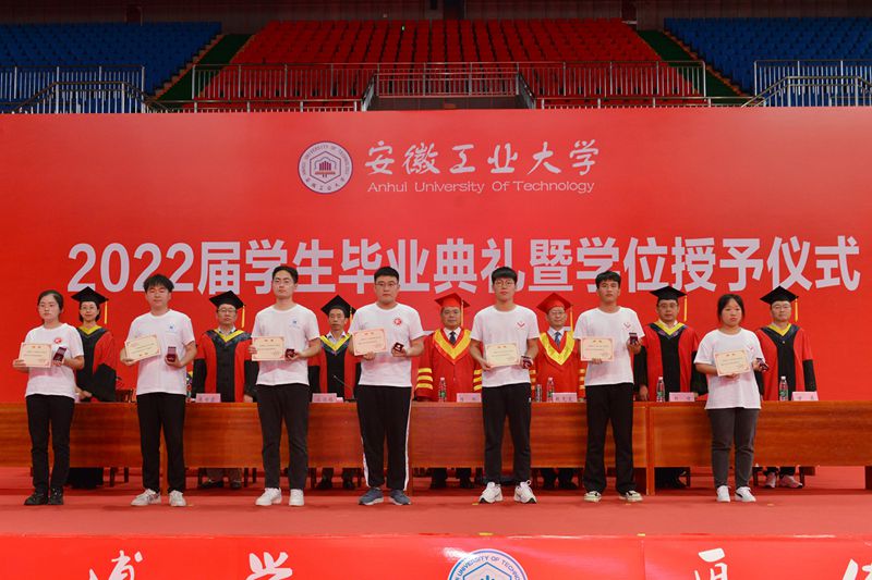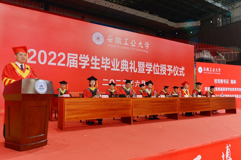 大会在全场师生齐声高唱国歌中拉开帷幕。校党委书记陆林宣读了《2022年安徽省普通高等学校优秀毕业生表彰决定》《2022年安徽工业大学优秀毕业生表彰决定》,来自冶金、材料、化工三个学院的46名同学荣获2022年安徽省普通高等学校优秀毕业生、73名同学被评为2022年安徽工业大学优秀毕业生。