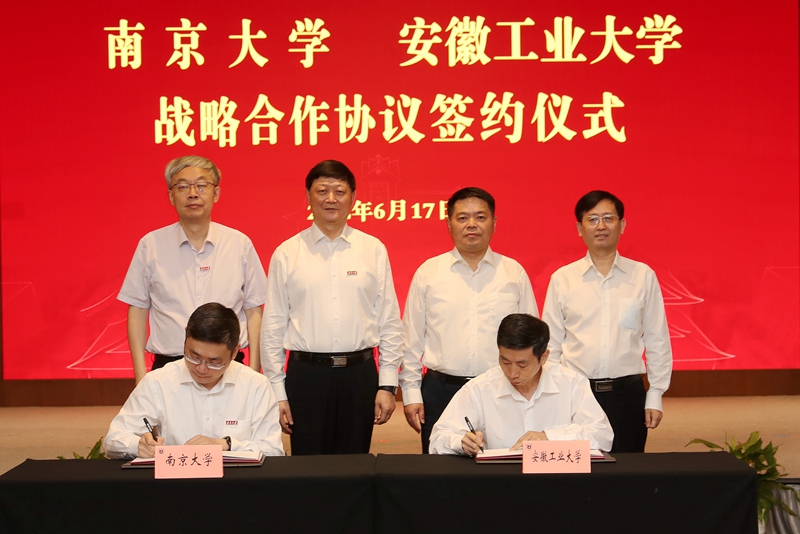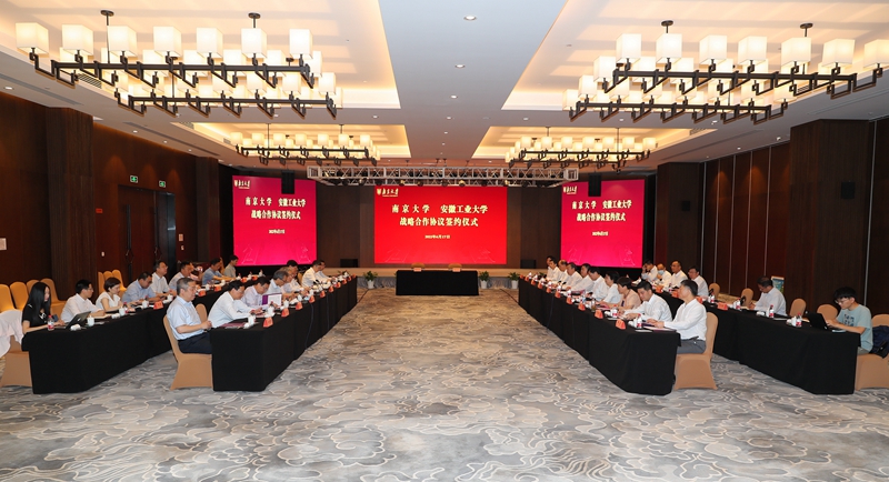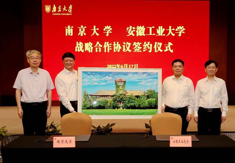 仪式上,陆林、魏先文代表学校向南京大学赠送了校庆贺礼,胡金波、吕建代表学校接收了贺礼。双方共同观看了南京大学宣传片,并围绕学科建设、科研平台建设、干部交流和学习培训、新工科建设等专题进行了深入交流。陆延青、水恒福代表双方签订了《南京大学安徽工业大学战略合作协议》,胡金波、吕建、陆林、魏先文见证观礼。