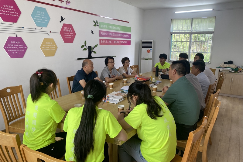 座谈会上,顾明言一行听取了实践队员阶段性成果汇报、支教感受和中心负责人刘磊对社会实践开展情况的介绍,向留守儿童中心赠送了图书、文具和体育用品。岳西团县委、毛尖山乡政府相关负责人对学校选派优秀志愿者参加暑期社会实践,关爱帮扶留守儿童、支持乡村基础教育表示感谢。
