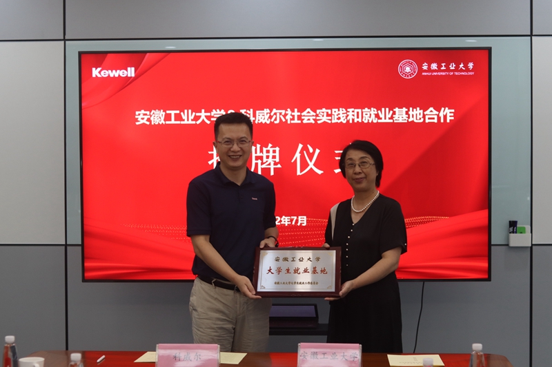 校企双方就产学研深度融合、实训基地建设等方面达成共识,签署《安徽工业大学人才培养与就业基地建设合作》战略协议,顾明言与企业负责人共同为“安徽工业大学就业实习基地”揭牌。