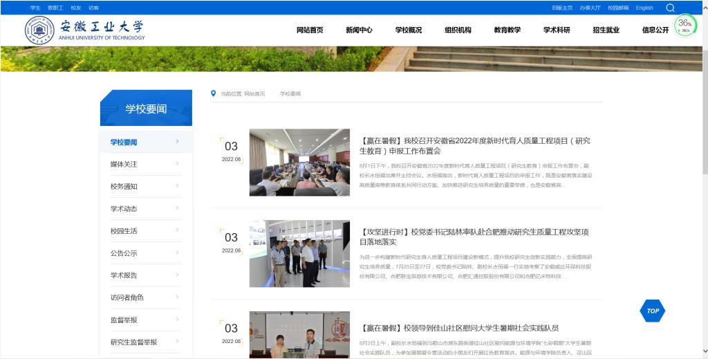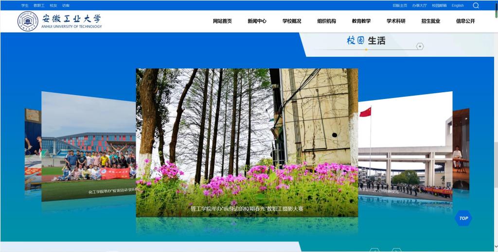 根据学校文化智慧绿色校园攻坚项目安排,党委宣传部与信息化处共同负责安徽工业大学官方网站的设计改版工作。在全校各部门、各单位的通力合作和大力支持下,经过广泛调研、设计调试、征求意见和并网试运行,新版校园网主站近日正式上线运行。