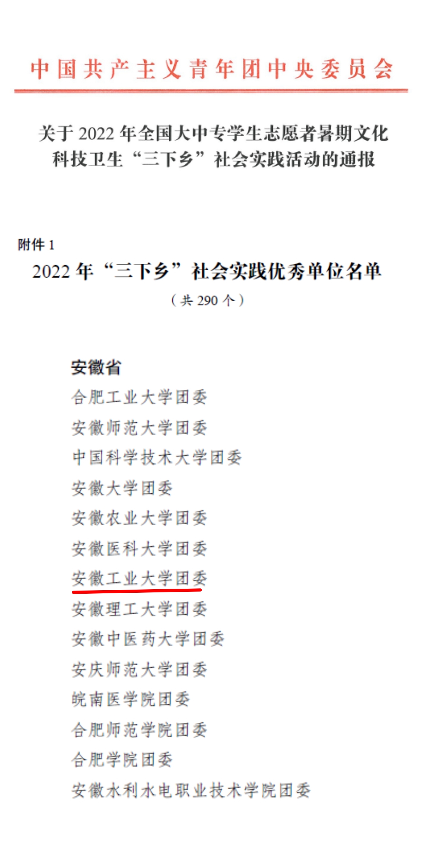 近日,共青团中央发布《2022年全国大中专学生志愿者暑期文化科技卫生“三下乡”社会实践活动总结通报结果公示》,我校团委荣获2022年“三下乡”社会实践优秀单位。