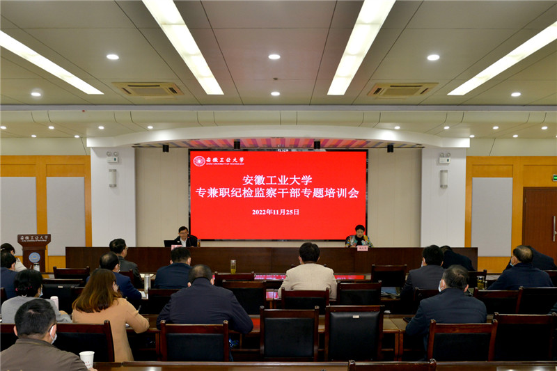 为深入学习宣传贯彻党的二十大精神,进一步提高全校专兼职纪检监察干部的理论素养和业务水平,根据《安徽工业大学“严监督、重预防、转作风、强队伍”专项整治行动实施方案》安排,11月25日上午,校纪委(监察专员办公室)组织召开专兼职纪检监察干部专题培训会。安徽省纪委监委第八纪检监察室一级调研员王在胜作专题辅导报告,校纪委书记、监察专员潘淑琴主持培训会。