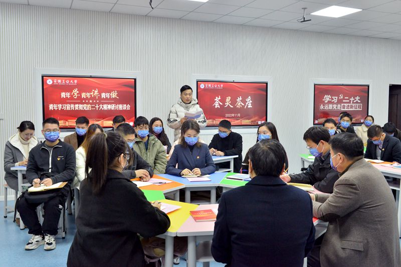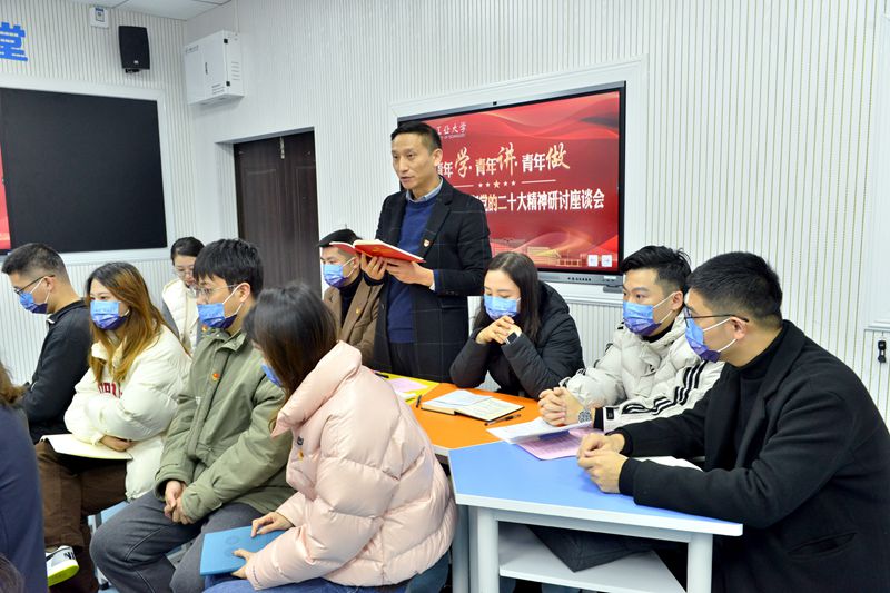 公共管理与法学院裴俊齐、材料科学与工程学院江依洋、外国语学院陈栉雨、微电子与数据科学学院陈广州、计算机科学与技术学院邵世华、商学院刘文庆等六位学生代表,以及电气与信息工程学院甘如美江、建筑工程学院印路路、艺术与设计学院张浩霆、马克思主义学院刘丹丹、团委赵美男、后勤处涂必华、表界面研究中心张林等六位青年教职工代表分别结合自身工作、学习、生活从不同角度畅谈自己对于党的二十大精神的所思、所悟、所行。