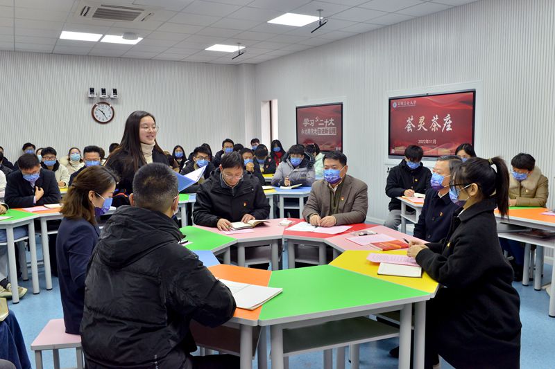 11月30日上午,我校第十四期“荟灵茶座”在秀山校区汇文楼举行。校党委书记、校学习宣传贯彻党的二十大精神宣讲团团长陆林作党的二十大精神宣讲报告。校党委副书记祖明出席,宣传部、学工部、研工部、团委、马克思主义学院等负责人,校党委讲师团代表、辅导员宣讲团代表、大学生宣讲团代表,青年教职工代表、学生代表等60余人参加。