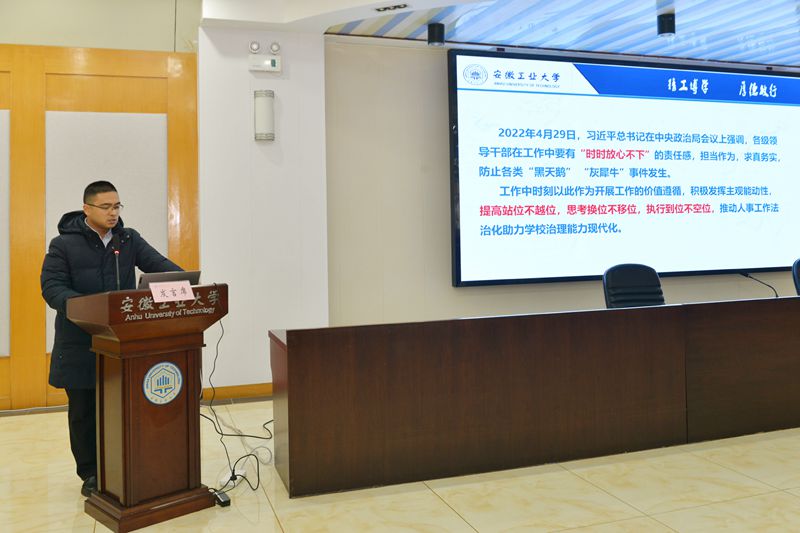 为更好地学习宣传贯彻党的二十大精神、有力推进学校内涵式高质量发展,提高机关工作效能和服务质量,祖明要求,一要不断提高政治站位,充分认识学习宣传贯彻党的二十大精神的重要意义,深刻领悟“两个确立”的决定性意义,不断增强“四个意识”、坚定“四个自信”、做到“两个维护”,将党的二十大提出的新征程、新使命,与高等教育、与学校实际相结合,全面落实立德树人根本任务、把全员、全过程、全方位“三全育人”落到实处,办好人民满意教育。二要不断增强干事创业本领,要深刻领会党的二十大提出的科技是第一生产力、人才是第一资源、创新是第一动力的深刻内涵。强化理论武装,在实践中学习、在实践中超越,培养创新精神和创新意识,创造性地做好学校的管理和服务工作。三要不断改进工作作风,牢固树立全心全意服务师生的服务理念,围绕学校中心工作,坚持问题导向,广泛开展调研活动,深入实际、深入基层、深入师生,以工作作风的新成效助推学校的改革发展。(撰稿:江文丽 审核:赵保平 张苒 杜飞)