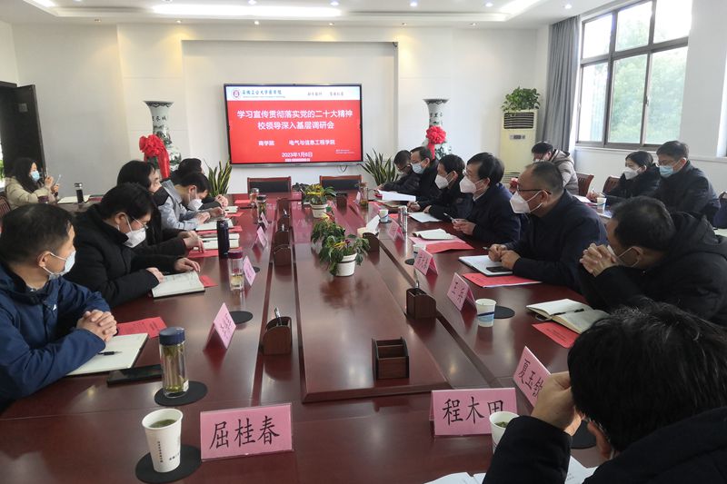 1月6日下午,校党委副书记、校长魏先文到商学院、电气与信息工程学院进行学校内部治理专题调研暨学校领导班子民主生活会征求意见,发展规划处负责人,商学院、电气与信息工程学院领导班子、系室主任、教师代表参加座谈。
