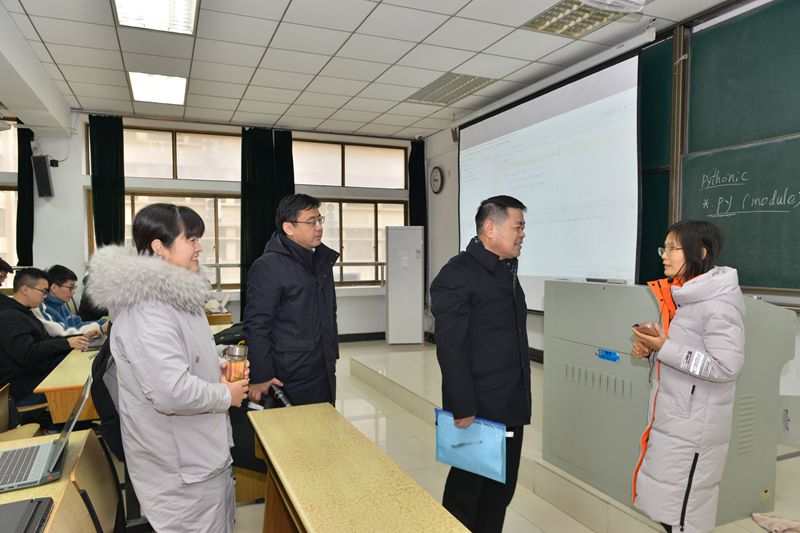 陆林在秀山校区先后听取了计算机科学与技术学院薛希玲老师讲授的《Python程序设计(双语)》和电气与信息工程学院刘升老师讲授的《仪表与自动化控制C》,充分肯定了两位老师利用信息技术开展课堂教学,让课堂教学从单向教学模式变为互动课堂。他指出,党的二十大首次将“推进教育数字化”写进了党代会报告,数字技术正成为教育发展的新赛道,已成为教育高质量发展的重要内容。要积极推动数字技术与传统教育融合发展,创新教育理念、方法、形态,让数字技术为教育赋能、更好服务于育人的本质。我们要始终坚持以习近平新时代中国特色社会主义思想铸魂育人,全面贯彻党的教育方针,把握“国之大者”,牢记为党育人、为国育才的使命担当,紧紧围绕立德树人根本任务,在“培养什么人、怎样培养人、为谁培养人”这个问题上旗帜鲜明,坚持正确的育人导向,努力成为大先生、大工匠,为造就一大批德智体美劳全面发展的社会主义建设者和接班人加“数”前进。