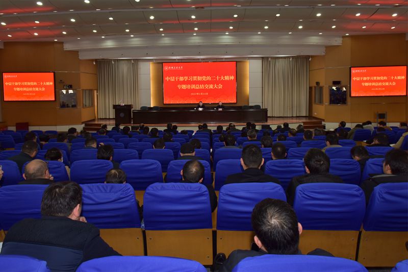 2月24日下午,我校召开中层干部学习贯彻党的二十大精神专题培训总结交流大会。校党委书记陆林作总结讲话,校党委副书记祖明主持会议。