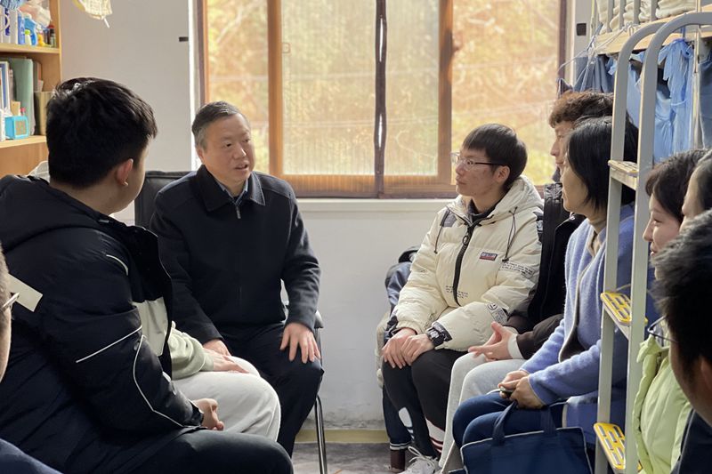 祖明一行走访了公法学院2019级、2022级、管工学院2019级学生宿舍,亲切地与学生们面对面谈心,详细了解毕业生目前的求职就业、考研复试、毕业论文、未来规划等情况,以及一年级同学的学习、生活适应情况,认真倾听了同学们对学校教学管理服务等方面的意见建议。