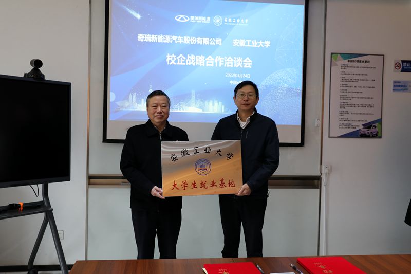 活动中,学生工作部副部长赵传刚和芜湖高新区人力资源服务产业园负责人签订了《人才培养与就业工作站合作协议》。管理科学与工程学院党委书记汪春胜与奇瑞新能源汽车股份有限公司、芜湖三花自控元器件有限公司、芜湖聚航新材料科技有限公司负责人签订了《人才培养与就业基地合作协议》,并进行“安徽工业大学大学生就业基地”授牌。(撰稿:杨金星 审核:赵颖 张苒 杜飞)